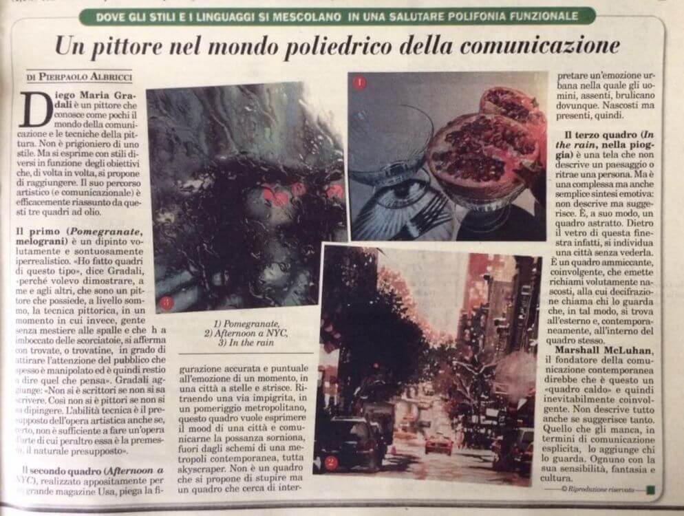 Diego Maria Gradali è nato a Piacenza nel 1968. Dopo aver conseguito la Maturità d’Arte Applicata presso l’Istituto Paolo Toschi di Parma nel 1987, ha intrapreso una brillante carriera nella comunicazione pubblicitaria, lavorando per importanti realtà del settore. Nel 2009 ha deciso di dedicarsi interamente alla pittura. Il suo linguaggio artistico mescola l’esperienza da art director a una raffinata sensibilità visiva, con un linguaggio visivo che richiama la precisione grafica e la pulizia formale del design professionale. La sua produzione è stata riconosciuta a livello internazionale attraverso premi, partecipazioni a mostre e concorsi, e l’inserimento nel prestigioso Catalogo d’Arte Moderna Mondadori (CAM).